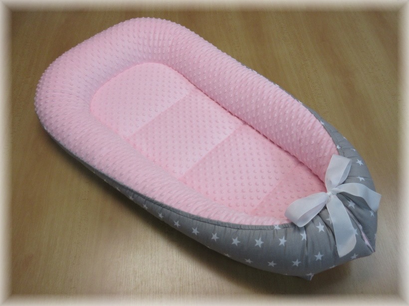 Oboustranné hnízdečko pro miminko střední- ležící plocha 34x70 cm, stuha šitá.