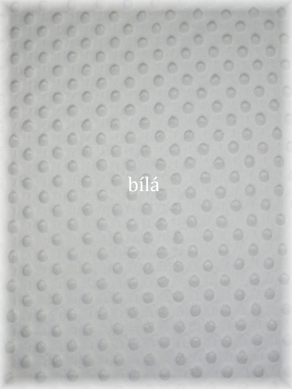 Minky- plyšová látka s dolíčkovým protlačováním, hebká, velmi příjemná na dotek. Velikost ďolíčku 1 cm.