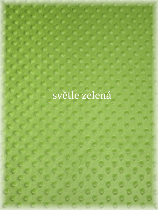 Minky- plyšová látka s dolíčkovým protlačováním, hebká, velmi příjemná na dotek. Velikost ďolíčku 1 cm.