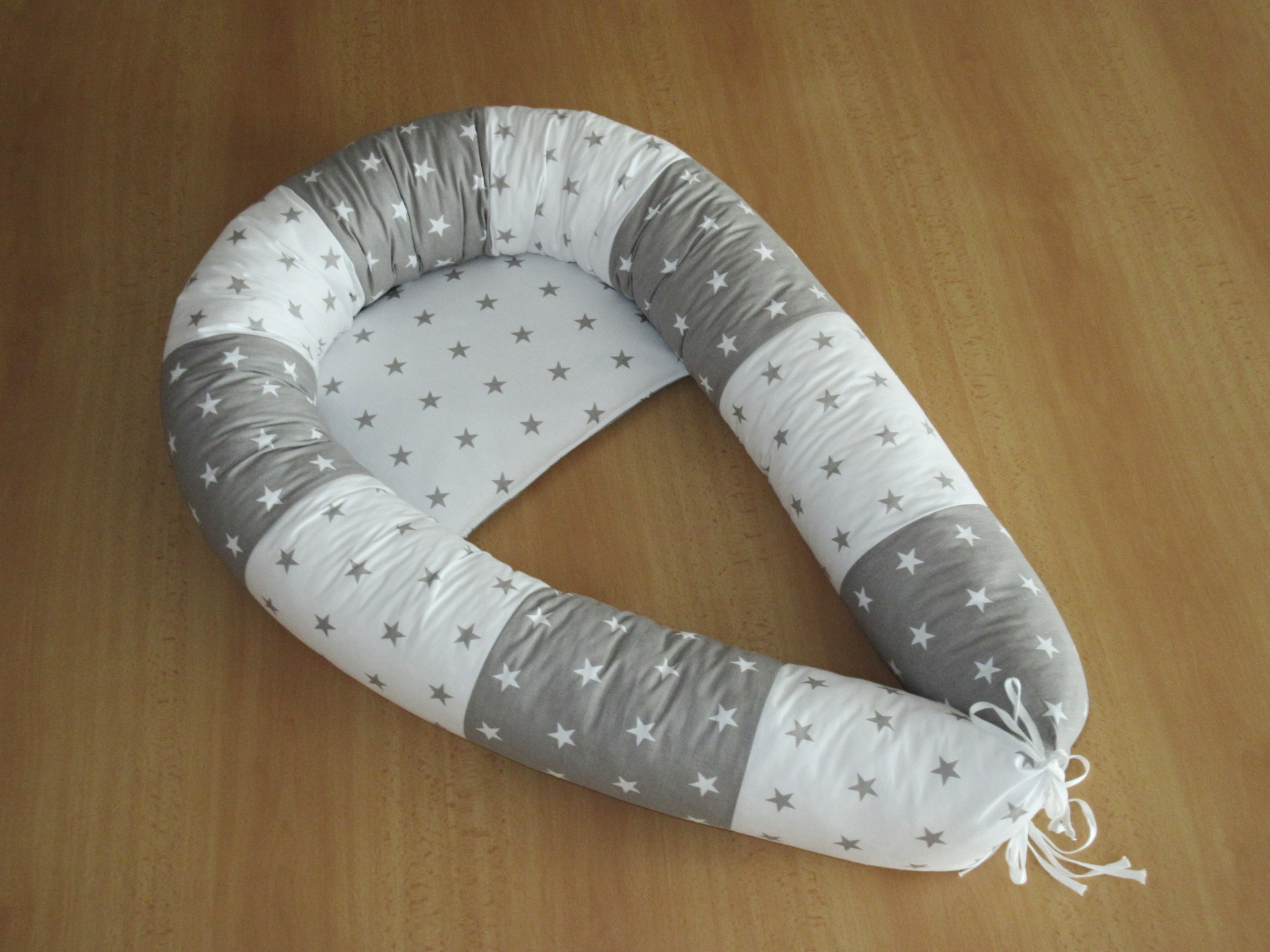 Polohovací textilní had- válec s polštářkem- šedobílé hvězdičky.
