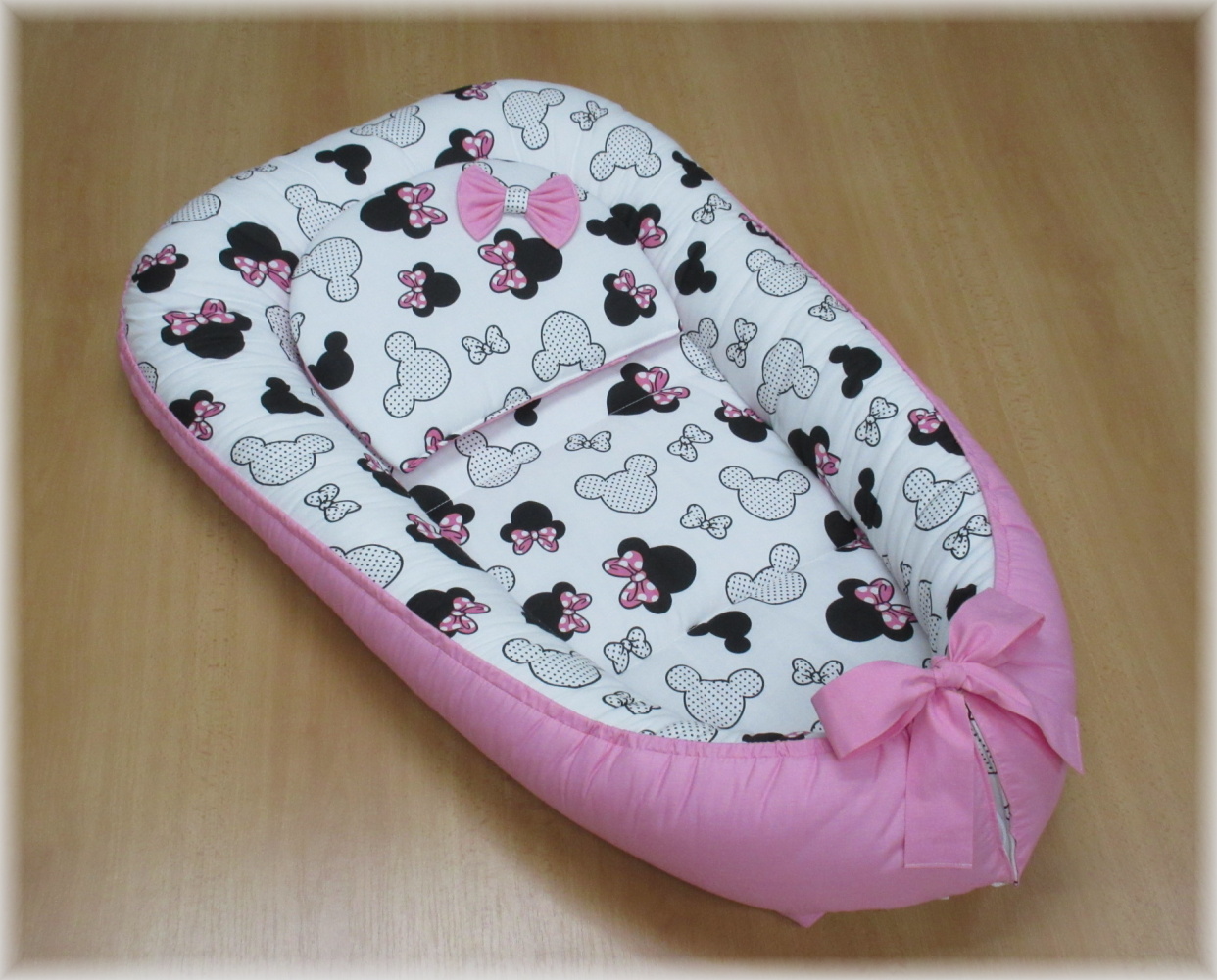 Oboustranné hnízdečko pro miminko s polštářkem + mašlička Myška růžováNa dotaz1 190 Kč/ ks